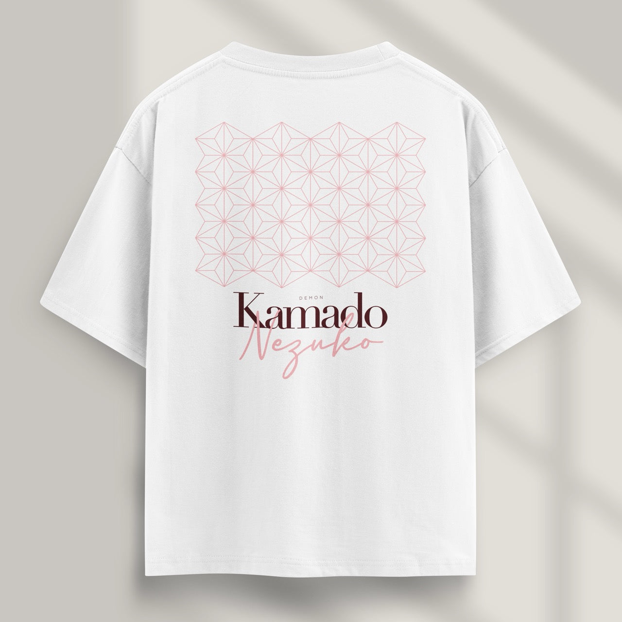 La camiseta oversize Asanoha es una reinterpretación elegante y minimalista inspirada en Nezuko Kamado, uno de los personajes más queridos de Demon Slayer.